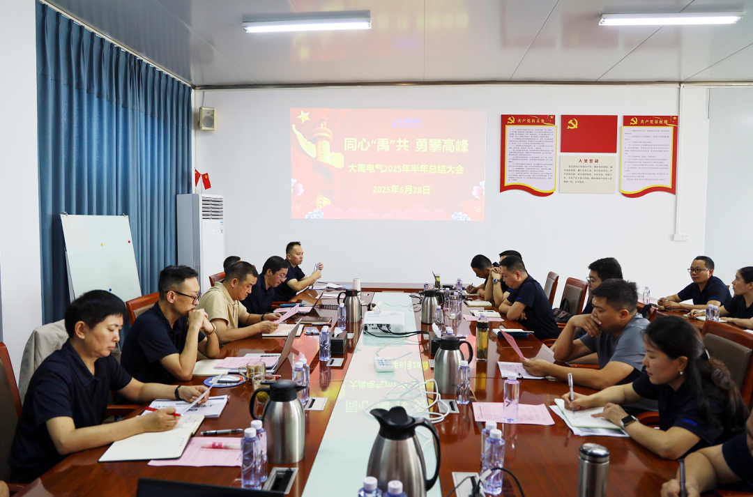 【概要描述】2025年6月28-29日,大禹電氣科技股份有限公司半年工作總結會,在公司3號會議室隆重召開。此次會議立足宏觀經(jīng)濟復蘇乏力、行業(yè)競爭格局深刻變革的大背景,全面復盤上半年工作,精準錨定下半年發(fā)展方向,為企業(yè)高質量發(fā)展擘畫藍圖。